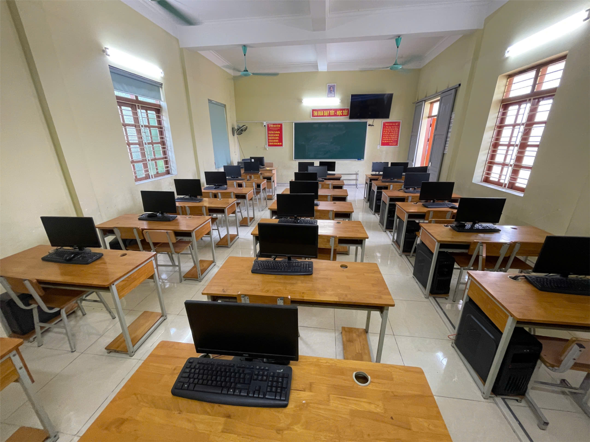 Là môn học gắn liền với máy tính và công nghệ, Tin học đòi hỏi phòng học phải được chuẩn bị kỹ lưỡng. Ngay từ đầu tháng 8, tôi cùng các đồng nghiệp trong tổ đã phối hợp với bộ phận kỹ thuật kiểm tra toàn bộ hệ thống máy tính, mạng nội bộ, điện và thiết bị trình chiếu. Những máy tính cũ hoạt động kém hiệu quả đã được thay thế, các phần mềm giảng dạy cũng được cập nhật, đảm bảo học sinh có thể học tập trên nền tảng hiện đại và ổn định. Giúp học sinh có thể học theo hình thức "mỗi em một máy" – điều kiện lý tưởng cho việc học tập và thực hành hiệu quả.
