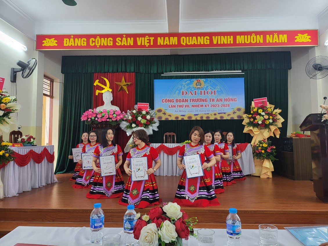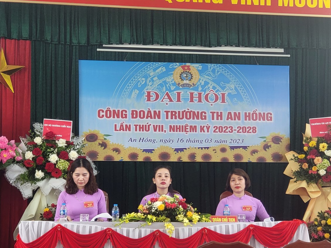 Nhiệm kỳ 2017-2022, Công đoàn trường Tiểu học An Hồng hoàn thành chỉ tiêu nghị quyết đề ra. Công tác chăm lo đời sống, đại diện bảo vệ, quyền và lợi ích hợp pháp của đoàn viên được quan tâm. Các hoạt động thăm hỏi, động viên và hỗ trợ đoàn viên được triển khai kịp thời. Công đoàn tặng quà con đoàn viên các dịp Tết Trung thu, Tết thiếu nhi, phát thưởng các cháu đạt thành tích trong học tập. Trong nhiệm kỳ qua, Công đoàn trường chú trọng tổ chức tốt các phong trào thi đua yêu nước, các cuộc vận động của ngành. Nhiều giáo viên có sáng kiến kinh nghiệm được xếp loại tốt, xuất sắc; 6 giáo viên tham gia hội thi Giáo viên dạy giỏi cấp thành phố . Liên tục nhiều năm liền, nhà trường đạt tập thể lao động xuất sắc, được Ủy ban nhân dân thành phố tặng bằng khen. Hàng năm, có nhiều đồng chí đạt danh hiệu chiến sỹ thi đua.