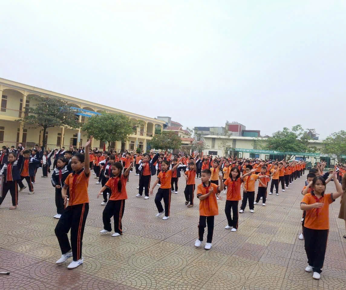 Tập thể dục đầu giờ giúp các em tăng cường sự tập trung trong giờ học.