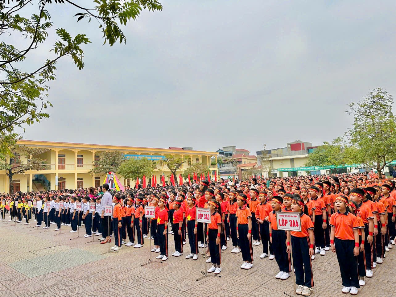 Cùng toàn thể thầy cô giáo và 1283 em học sinh trường Tiểu học An Hồng đã có mặt đầy đủ, tạo nên không khí náo nức và sôi động.