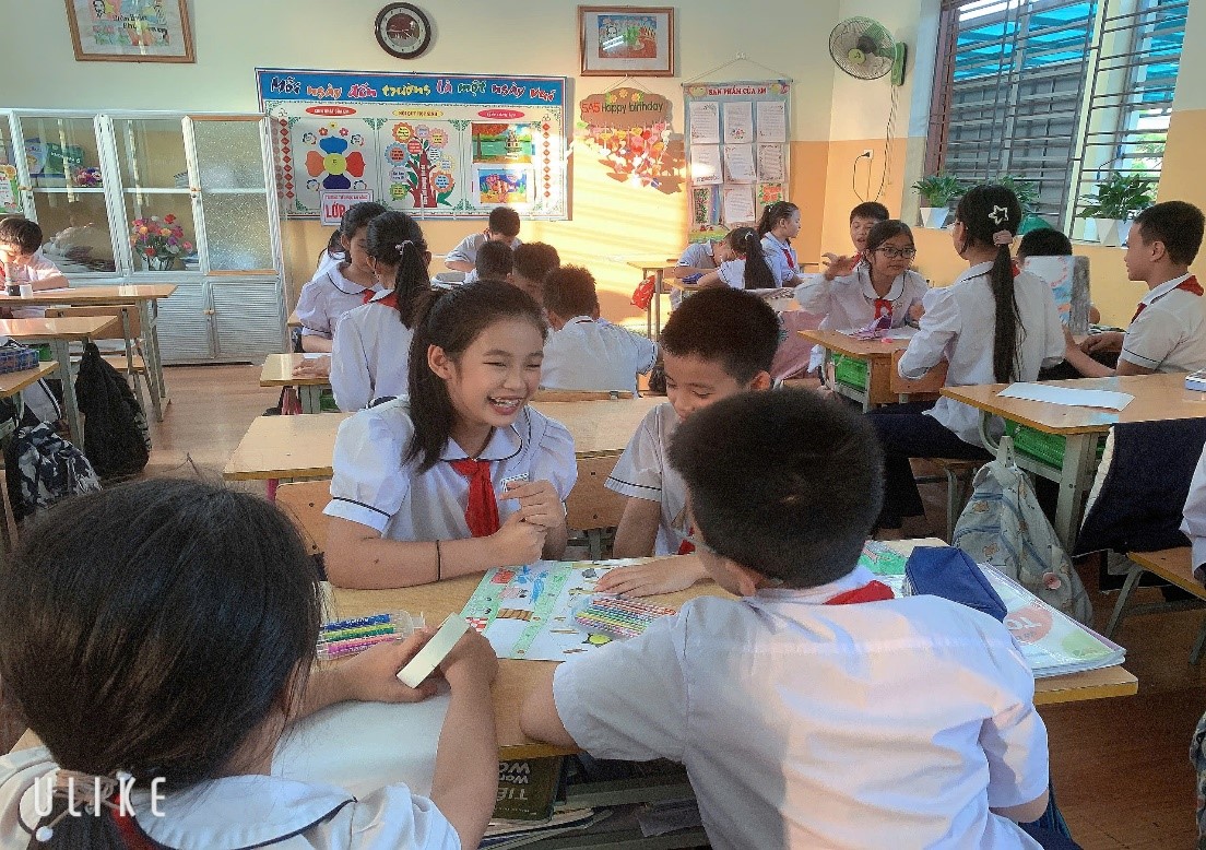 Trường học là một ngôi nhà chung của các em học sinh mà ở đó các em có thể lĩnh hội được những tri thức bổ ích, được rèn luyện thành người. Môi trường giáo dục tốt sẽ là nơi ươm mầm cho sự phát triển nhân cách tốt. Một trong những yếu tố tạo dựng môi trường giáo dục tốt đó là việc trang trí không gian của mỗi lớp học.Chính vì thế, để trang trí lớp học thêm phần sinh động, các em học sinh lớp 5A5 đã cùng nhau thực hiện ý tưởng trang trí lớp học bằng những bức tranh sáng tạo, đẹp mắt thể hiện cảm xúc của mình qua các nét vẽ, gam màu trong tranh.
