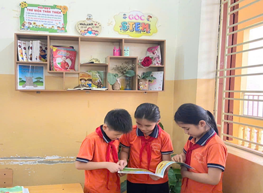 Sách là tinh hoa của nhân loại, chứa đựng kho tàng kiến thức khổng lồ. Để duy trì, phát triển văn hóa đọc cho học sinh, trường học luôn quan tâm, triển khai nhiều mô hình thư viện, phong trào đọc sách phong phú, đa dạng. Phát triển văn hóa đọc trong nhà trường được coi là yếu tố quan trọng thúc đẩy quá trình học tập, nghiên cứu, khám phá tri thức của học sinh. Qua đó, từng bước hình thành thói quen, kỹ năng, làm lan tỏa phong trào đọc sách trong nhà trường, góp phần thiết thực nâng cao chất lượng giáo dục toàn diện, bồi dưỡng nhân cách, tâm hồn và lối sống văn hóa lành mạnh cho học sinh. Các hình thức khuyến khích học sinh đọc sách đã được nhà trường tổ chức đa dạng phong phú, được các em học sinh lớp 3A7 hào hứng tham gia như đọc sách ở thư viện, “ Thư viện xanh không đồng ” đặt tại lớp, thuận tiện cho học sinh đọc sách vào giờ ra chơi. Các đầu sách được phân loại, sắp xếp khoa học theo nội dung, chủ đề tiện cho việc tìm đọc của học sinh…