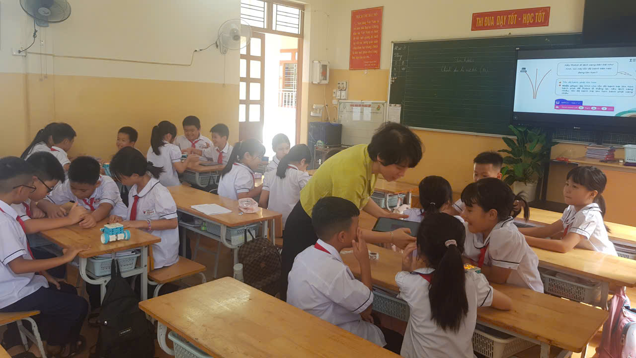 Trong tiết học các em đã được tự tay thực hành mang lại nhiều hứng thú trong học tập cho các em. Với sự đoàn kết, tư duy, sáng tạo, kết hợp giữa kiến thức liên môn đã học các em thảo luận sôi nổi, đưa ra ý kiến rồi cả nhóm thống nhất trong nhóm làm một sản phẩm.