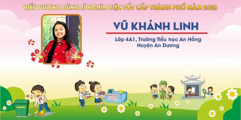 Liên đội trường Tiểu học An Hồng chúc mừng em Vũ Khánh Linh học sinh lớp 4A1 vinh dự được nhận biểu dương danh hiệu “Dũng sĩ nghìn việc tốt”.