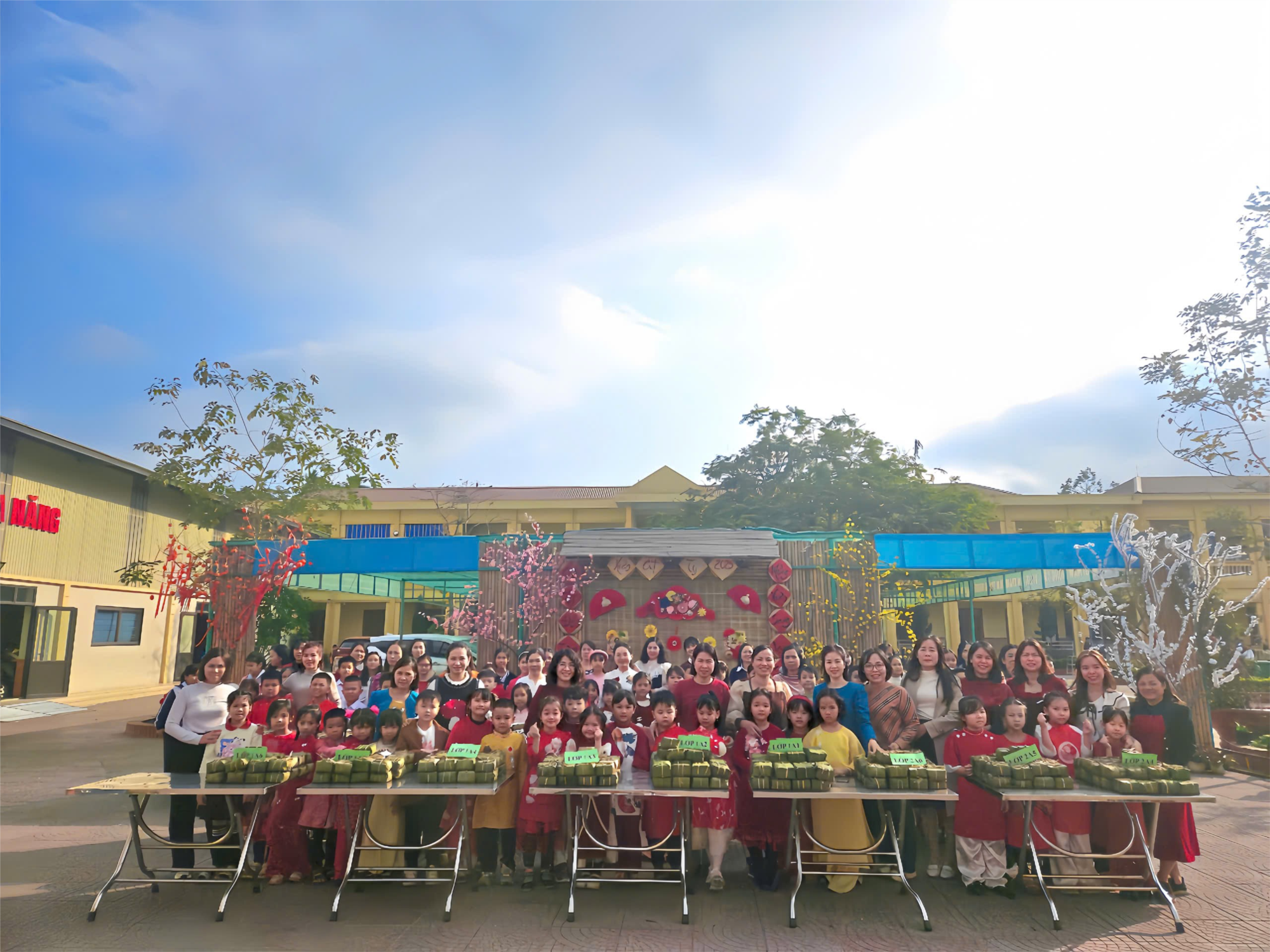 🎁 Trong chương trình, nhà trường đã phối hợp cùng Ban đại diện Cha mẹ học sinh trao tặng 1.282 chiếc bánh chưng xanh cho toàn bộ các em học sinh trong trường. Mỗi chiếc bánh trị giá 30.000 đồng, không chỉ là món quà vật chất mà còn chứa đựng những lời chúc tốt đẹp cho một năm mới an lành, hạnh phúc.