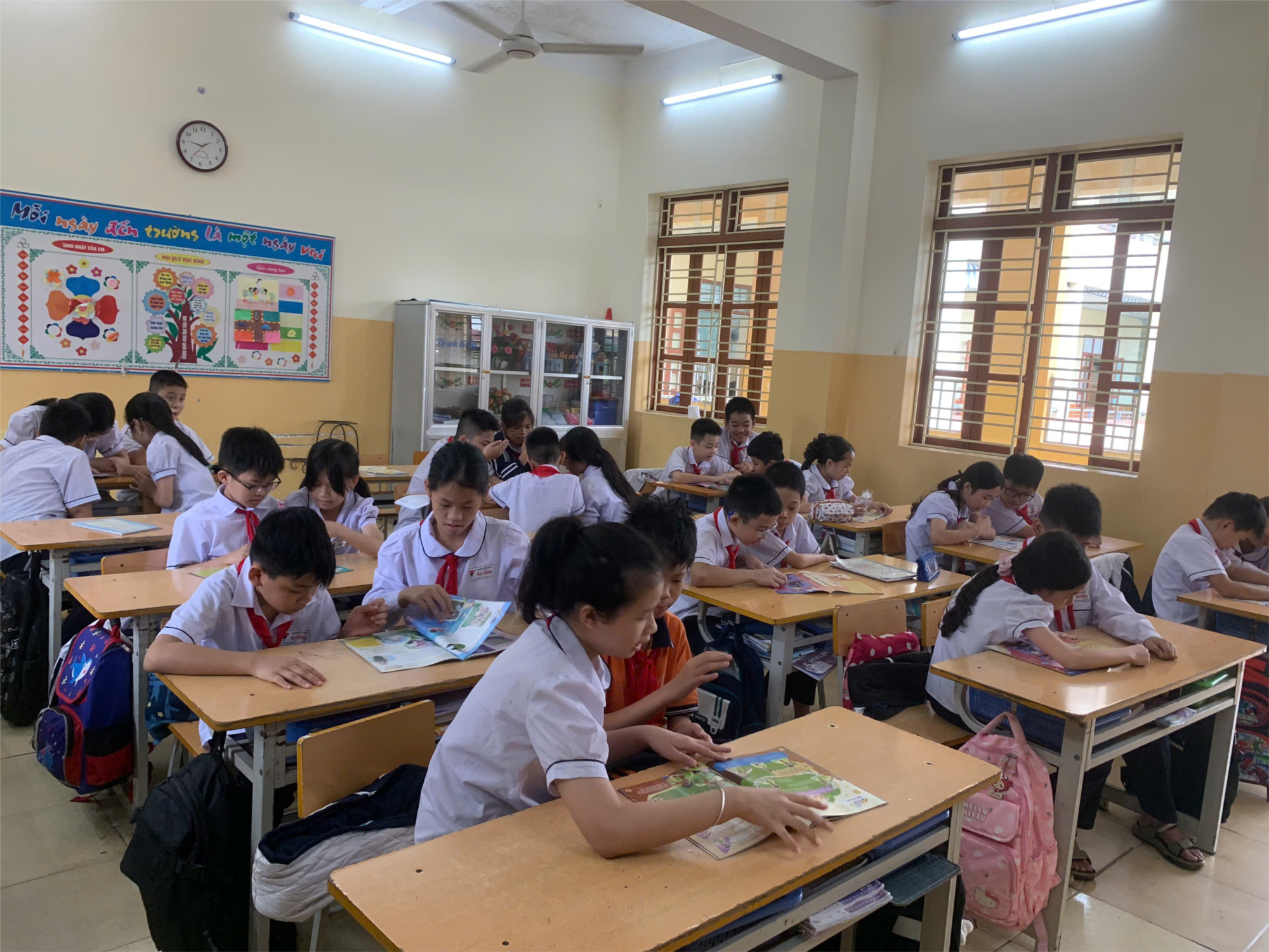 Ngay từ những ngày đầu phát động, không khí đọc báo trong lớp đã diễn ra vô cùng sôi nổi. Giờ ra chơi hay đầu buổi học, từng đôi bạn lại cùng nhau mở những trang báo mới, chăm chú đọc, rồi hào hứng trao đổi về những câu chuyện hay, bài viết thú vị, gương sáng học tốt, việc tốt hay những mẩu chuyện cười dí dỏm. Tiếng đọc báo khe khẽ xen lẫn tiếng cười rộn rã khiến lớp học như thêm tươi vui và ấm áp hơn.
