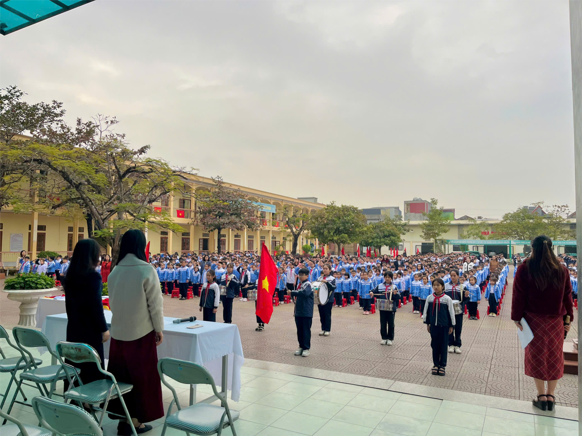 Tại buổi lễ, cô Nguyễn Thị Ngọc Ánh - Phó Hiệu trưởng nhà trường đã đánh giá khái quát kết quả công tác Đội trong học kỳ I. Trong thời gian qua, Liên đội luôn duy trì tốt nền nếp, nội quy học sinh; đồng thời tổ chức nhiều hoạt động giáo dục đạo đức, kỹ năng sống thiết thực và ý nghĩa. Các phong trào như “Tuần học tốt”, hoạt động trải nghiệm “Uống nước nhớ nguồn”, Hội khỏe Phù Đổng cấp trường… đã thu hút đông đảo học sinh tham gia, góp phần tạo nên môi trường học tập thân thiện, tích cực.