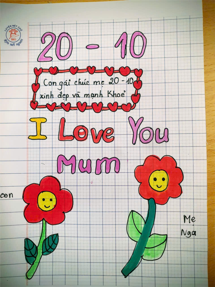 Dưới sự hướng dẫn của cô giáo, các bạn nhỏ đã tự tay làm những tấm thiệp chúc mừng xinh xắn, viết lên đó những lời chúc chân thành và dễ thương. Có bạn còn vẽ hình mẹ đang nấu ăn, có bạn vẽ cô giáo đang giảng bài, thể hiện tình cảm chân thật của các em.