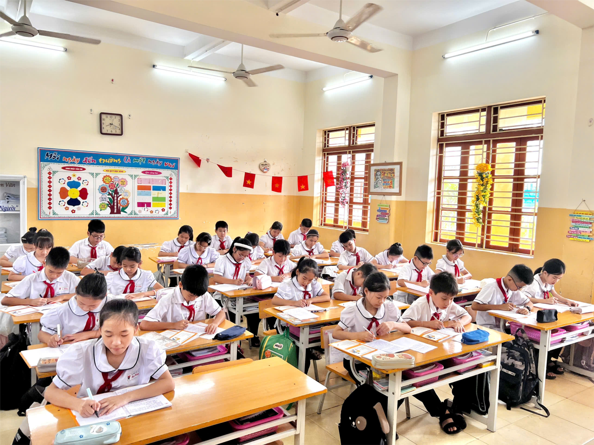 Không khí lớp học luôn sôi nổi nhưng vẫn giữ được sự nghiêm túc. Các em chăm chú lắng nghe, tích cực phát biểu, làm việc nhóm hiệu quả và chủ động trong mọi hoạt động học tập. Thái độ học tập tích cực của học sinh được cô giáo ghi nhận và biểu dương.