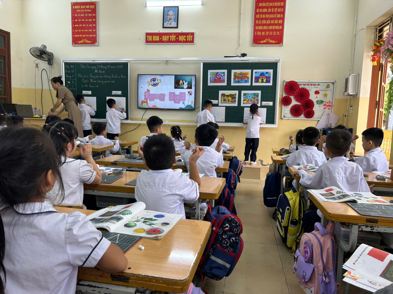 Trong giờ học, lớp 1A2 luôn giữ tinh thần vui vẻ, nghiêm túc. Các em tập trung quan sát, chăm chú lắng nghe hướng dẫn, mạnh dạn phát biểu và tự tin thể hiện ý kiến. Nhiều em còn tích cực luyện tập thêm tại nhà, sưu tầm tranh ảnh, đồ vật handmade để chia sẻ với bạn bè và đóng góp vào các hoạt động trưng bày của lớp.