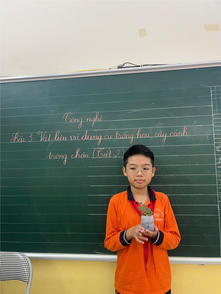 Ngay từ đầu tiết học, không khí lớp học đã trở nên sôi nổi khi các em được quan sát các loại vật liệu trồng cây, phân biệt các dụng cụ cần thiết và trao đổi cách chăm sóc cây cảnh. Thông qua bài học, học sinh hiểu rằng trồng cây không chỉ là hoạt động thực hành gần gũi mà còn rèn cho các em sự kiên trì, tỉ mỉ và tinh thần yêu thiên nhiên.