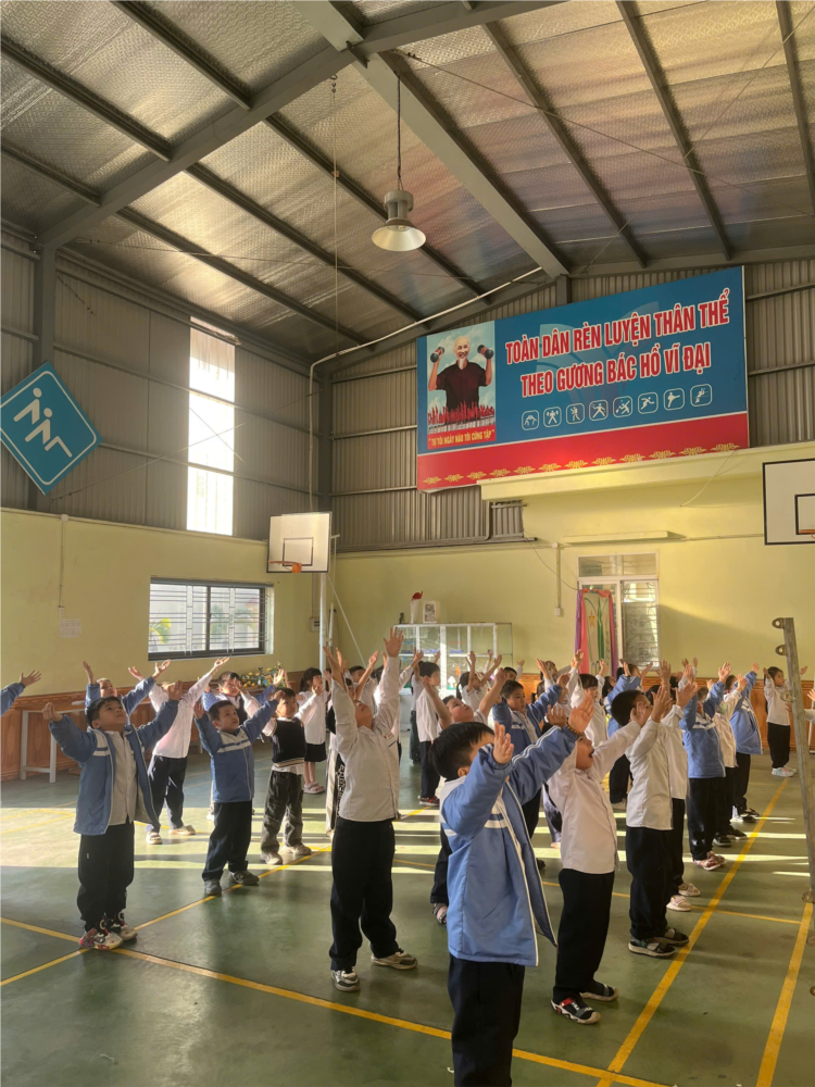 Khi buổi tập kết thúc, nhiều em chia sẻ rằng các em cảm thấy cơ thể nhẹ nhàng và thoải mái hơn, tinh thần cũng phấn khởi để bước vào các tiết học tiếp theo. Không khí vui tươi ấy lan tỏa khắp phòng tập, như một bước khởi động đầy tích cực cho ngày mới.