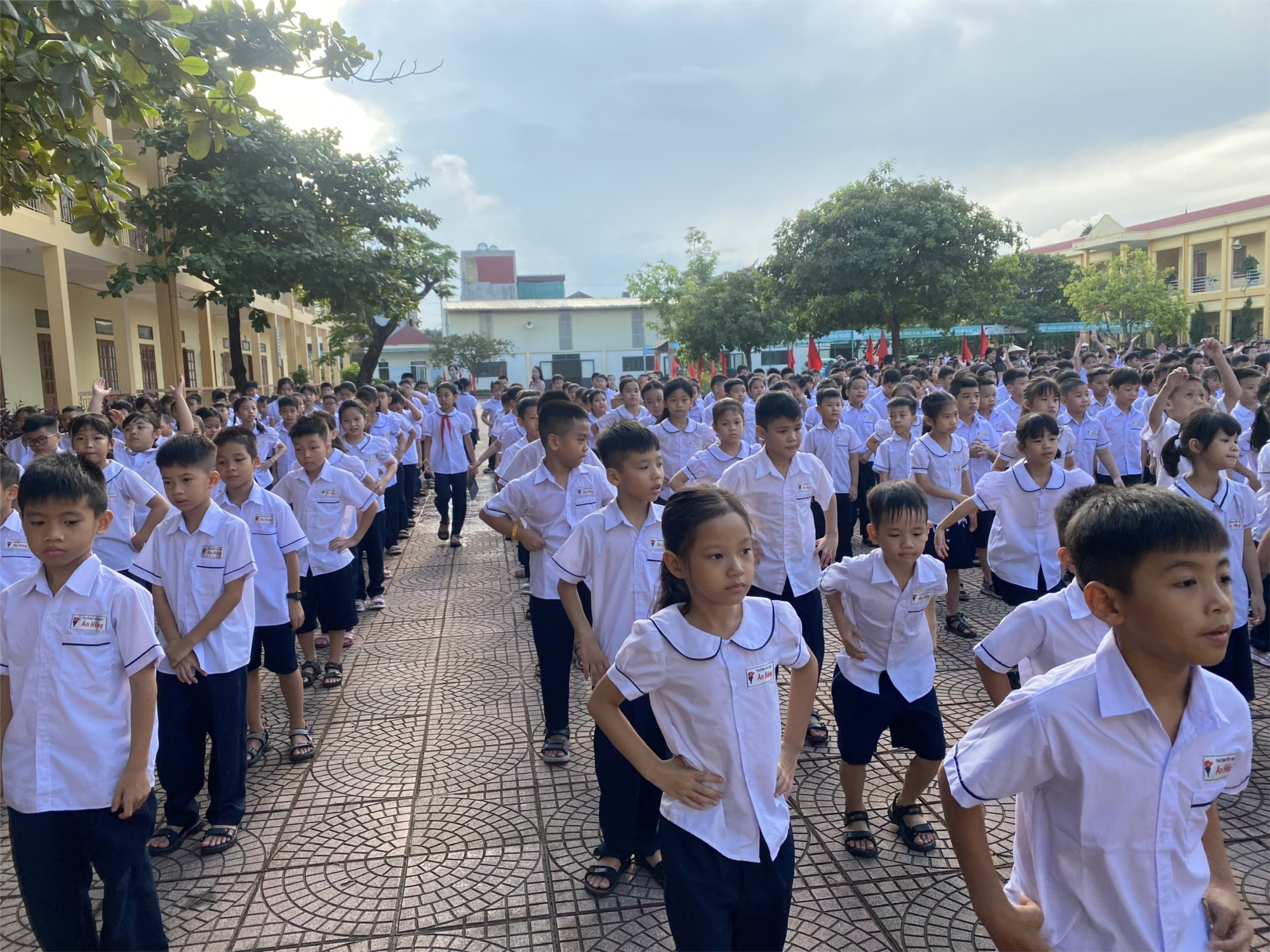 Các em học sinh hào hứng thực hiện những động tác nhịp nhàng, khỏe khoắn trong bầu không khí vui tươi, đoàn kết. Hoạt động không chỉ giúp rèn luyện sức khỏe, nâng cao thể lực mà còn tạo tinh thần sảng khoái, hứng khởi trước khi bước vào giờ học.