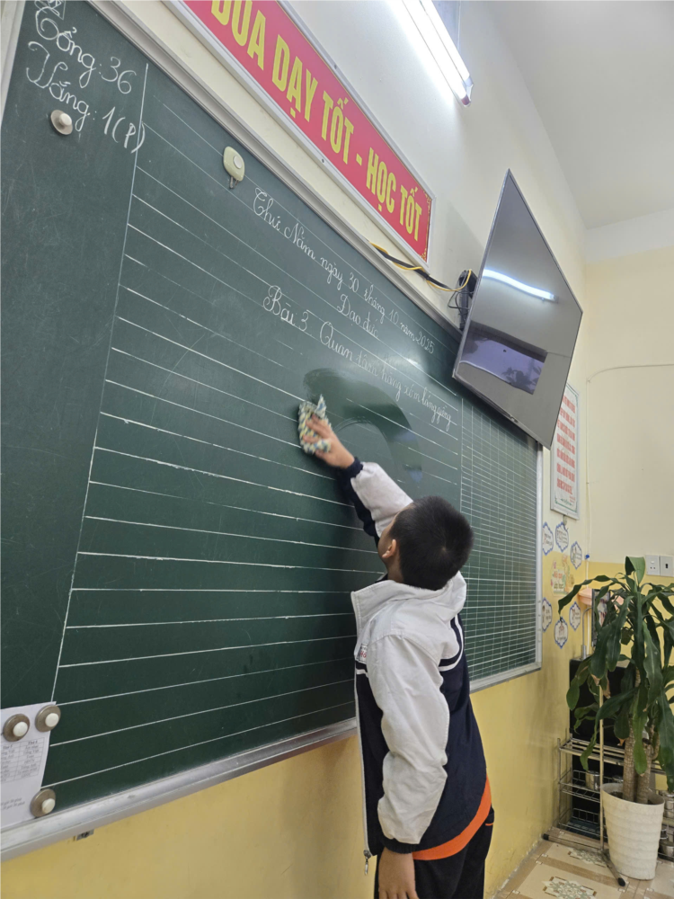 Môi trường học tập sạch sẽ, gọn gàng không chỉ giúp chúng ta thoải mái và tập trung hơn khi học bài, mà còn thể hiện sự văn minh và trách nhiệm của mỗi người. Hôm nay, chúng ta hãy cùng nhau nhắc nhở và thực hiện tốt hơn nữa việc dọn vệ sinh và bảo vệ môi trường lớp học nhé!