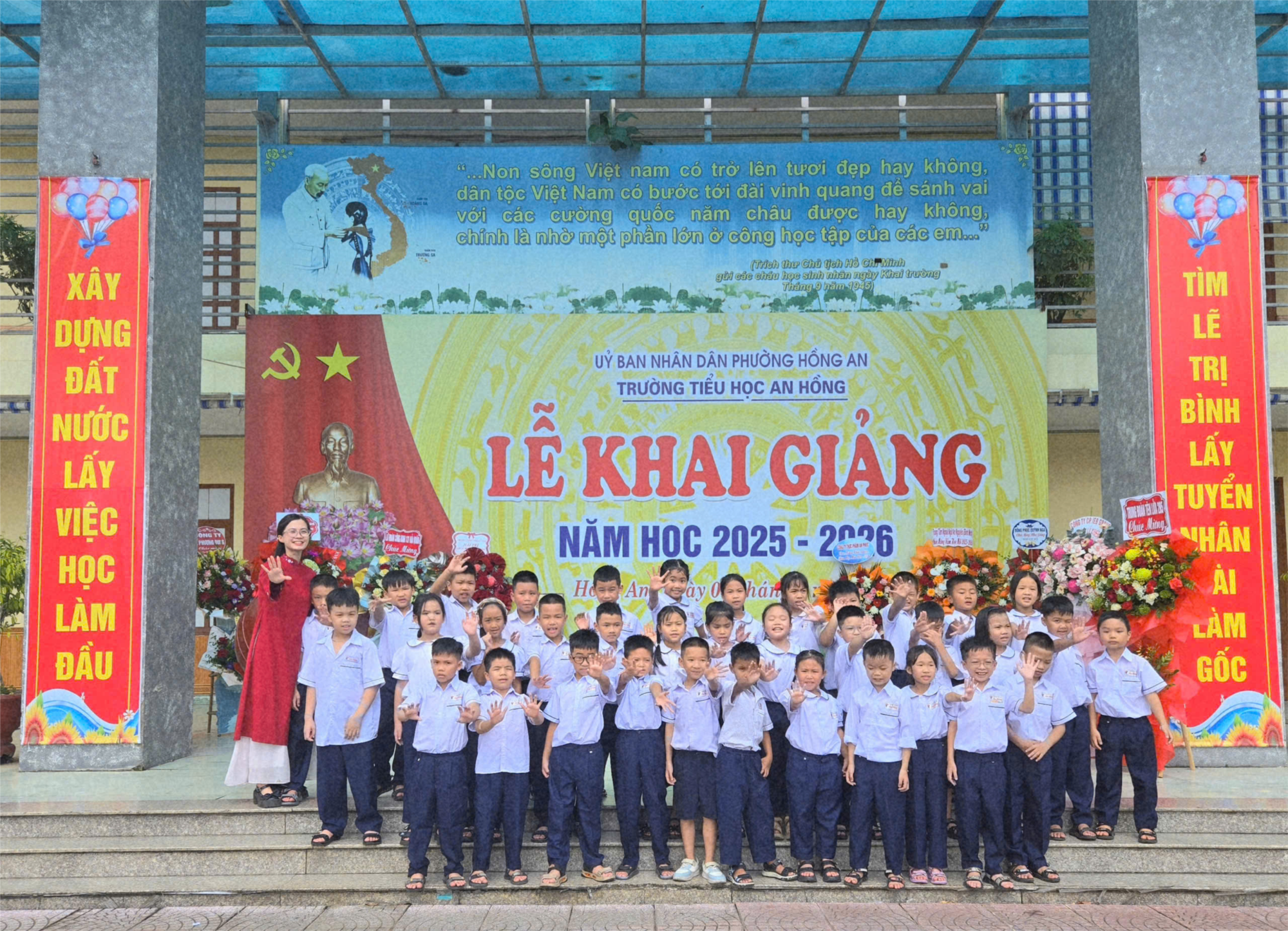 "Học sinh An Hồng – Chăm sóc, học giỏi, lễ phép và sáng tạo".