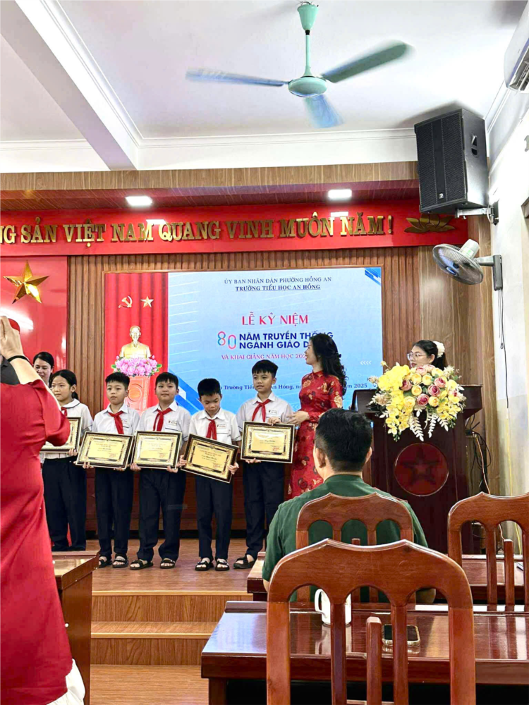 Đáng chú ý là em học sinh Nguyễn Thái Bảo đã xuất sắc nhận được học bổng tiếng Anh từ trung tâm ngoại ngữ Hải Trí, thể hiện năng lực ngôn ngữ vượt trội và sự nỗ lực không ngừng trong học tập. Đây là thành quả xứng đáng cho sự cố gắng của các em cũng như sự tận tâm từ các thầy cô giáo trong nhà trường. Không chỉ học giỏi, các em còn rất đa tài. Trong đó, nhiều em thể hiện năng khiếu nổi bật về âm nhạc, đặc biệt là khả năng chơi đàn organ, piano… Em đã tích cực tham gia các chương trình văn nghệ, biểu diễn tại các sự kiện “Festival Piano 2025 nốt nhạc bay xa”góp phần làm phong phú thêm đời sống tinh thần của học sinh. Cô giáo chủ nhiệm lớp 5A7 chia sẻ: “Nguyễn Thái Bảo không chỉ chăm ngoan, lễ phép mà còn rất chủ động trong học tập và rèn luyện kỹ năng sống". Lớp luôn tự hào vì em chính là những bông hoa tươi đẹp góp phần làm rạng danh ngôi trường An Hồng.” Sự thành công của Nguyễn Thái Bảo là minh chứng rõ ràng cho hiệu quả của mô hình giáo dục toàn diện mà Trường Tiểu học An Hồng đang theo đuổi, nơi học sinh được phát triển cả về trí tuệ, kỹ năng và nhân cách; sự phối hợp giáo dục chặt chẽ giữa gia đình – nhà trường- xã hội.
