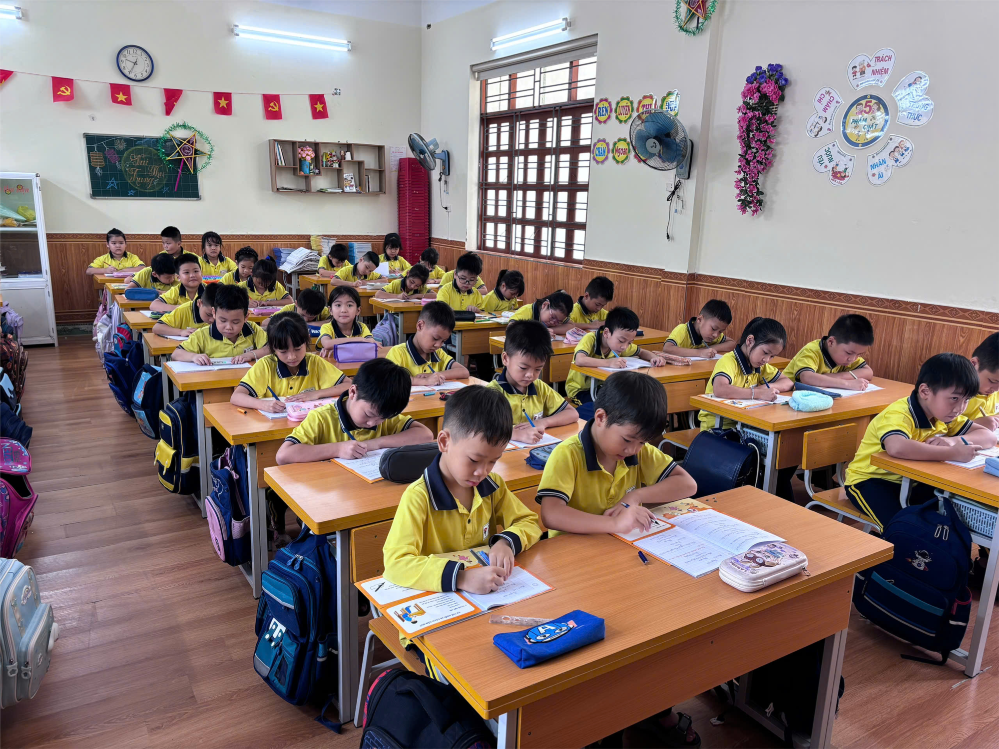 Ngay từ đầu năm học, cô giáo chủ nhiệm đã hướng dẫn các em tư thế ngồi viết đúng, cách cầm bút, đặt vở và trình bày bài sạch đẹp. Mỗi ngày, trong các tiết học, cô đều dành thời gian quan sát, chỉnh sửa cho từng bạn, đặc biệt là những em còn viết chưa đều nét. Cả lớp còn có góc trưng bày “Vở sạch – Chữ đẹp”, nơi các bạn có thể giới thiệu những trang vở tiêu biểu của mình để cùng học hỏi.