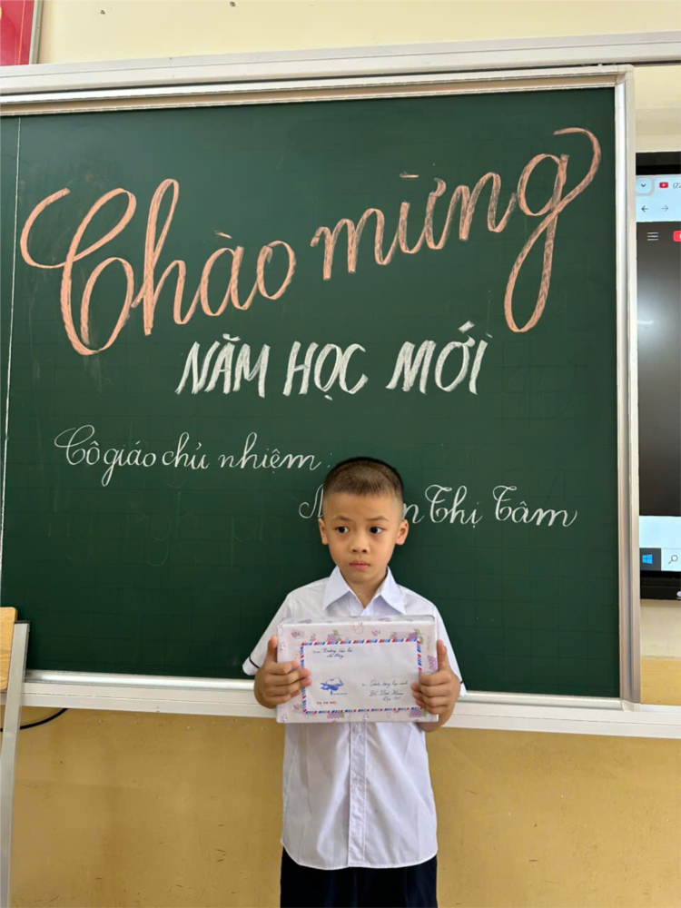 Ngày khai giảng năm học mới, nhà trường đã dành tặng Hoàn một món quà nhỏ như lời động viên tinh thần. Trong vòng tay yêu thương của thầy cô và bạn bè, Hoàn đã nở nụ cười thật rạng rỡ. Niềm vui ấy không chỉ là động lực để em tiếp tục hành trình đến trường, mà còn là minh chứng cho sức mạnh của niềm tin và nghị lực ở cậu học trò nhỏ.