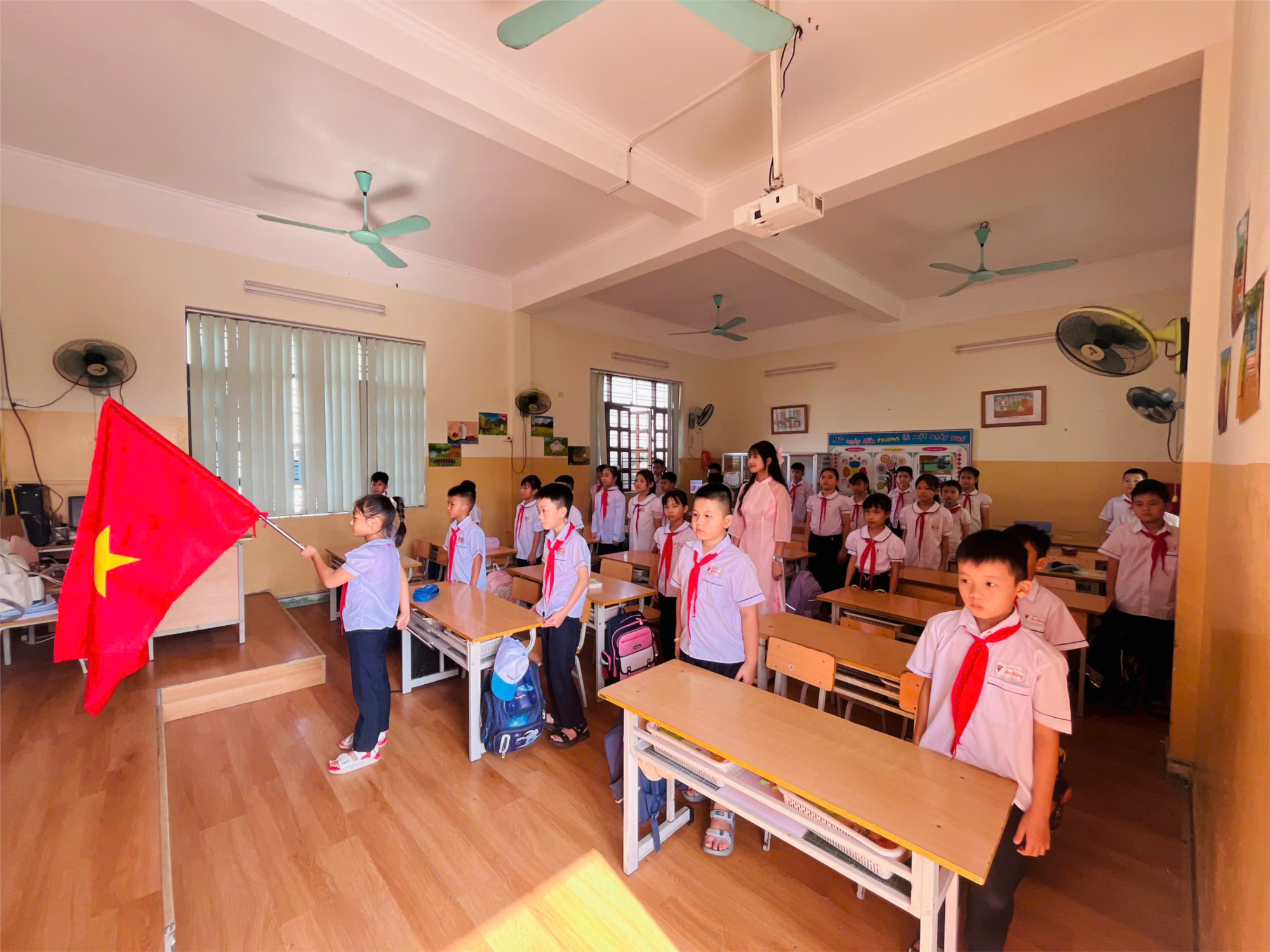 Dưới sự hướng dẫn của cô giáo chủ nhiệm Phạm Thùy Dương, buổi lễ chào cờ được diễn ra đúng nghi thức. Toàn thể học sinh nghiêm trang hát Quốc ca và Đội ca, thể hiện tinh thần yêu nước và lòng tự hào dân tộc. Sau phần chào cờ, lớp cùng nhau điểm lại những hoạt động nổi bật trong tuần qua và nghe cô giáo nhắc nhở, động viên tinh thần học tập, rèn luyện đạo đức trong tuần mới.