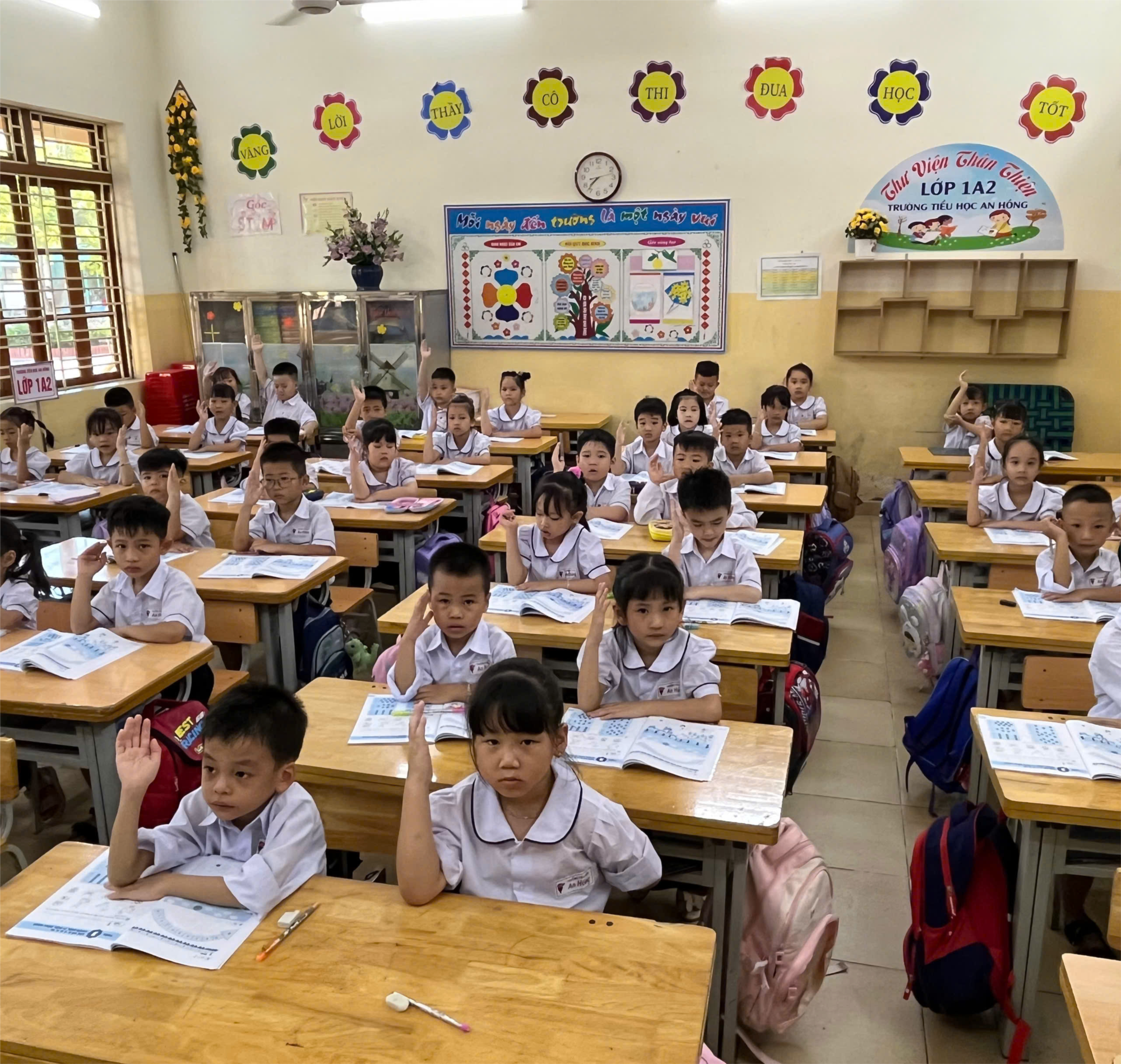 Trong hành trình đổi mới giáo dục, Trường Tiểu học An Hồng luôn chú trọng xây dựng một môi trường học tập thân thiện, an toàn và đầy hứng khởi cho học sinh. Hình ảnh các em nhỏ trong lớp 1A2, ngay ngắn trong bộ đồng phục, tích cực giơ tay phát biểu trong giờ học là minh chứng rõ nét cho một “lớp học hạnh phúc”.