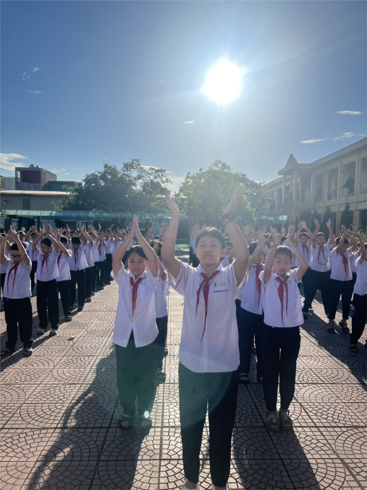 Sáng nào cũng vậy, đúng 7 giờ 15 phút, trên sân trường tiểu học An Hồng, lớp 5A2 hào hứng tham gia khởi động đầu giờ. Tiếng nhạc vang lên, cả lớp nhanh chóng xếp hàng ngay ngắn, đồng loạt giơ tay, nhún chân, xoay người thật đều đặn. Những động tác khỏe khoắn, nhịp nhàng, gương mặt ai cũng rạng rỡ trong nắng sớm. Không khí vui tươi, sôi nổi khiến sân trường như bừng sáng. Buổi tập thể dục không chỉ giúp các em rèn luyện sức khỏe mà còn mang lại tinh thần thoải mái, sẵn sàng bước vào một ngày học tập mới.