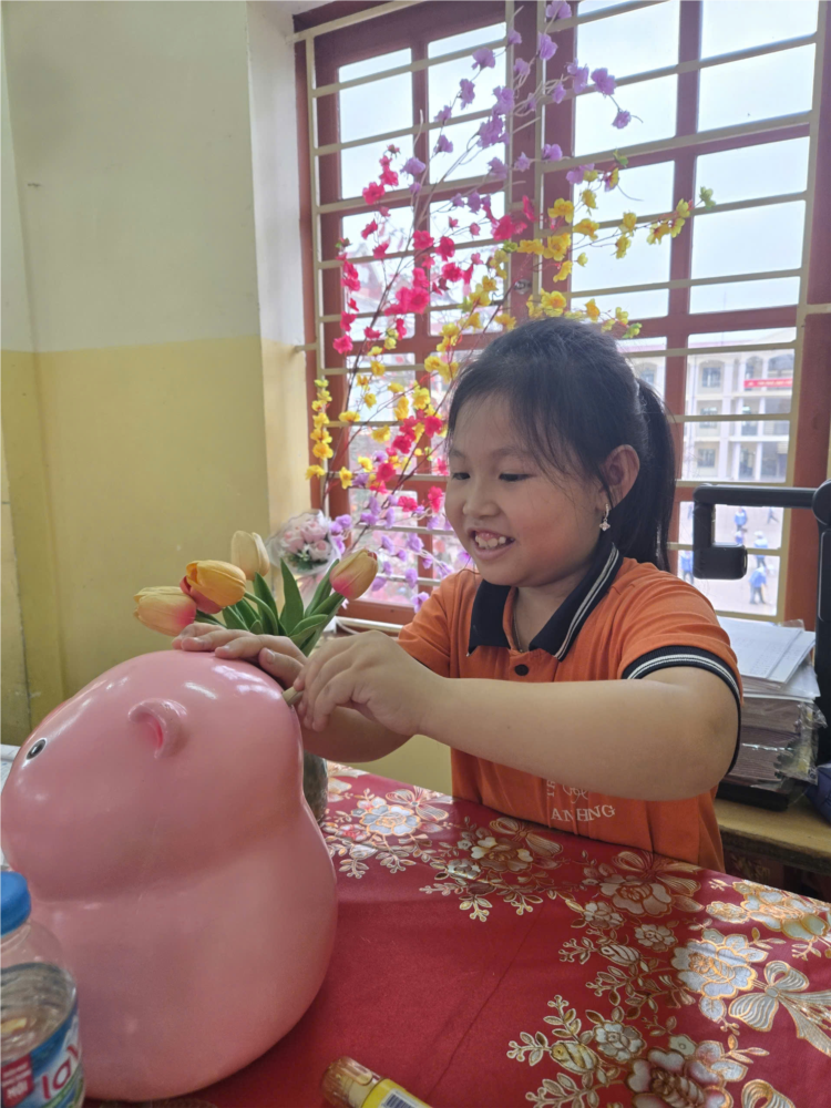 Ngay từ những ngày đầu phát động, không gian lớp học 3A6 đã trở nên hào hứng hơn bao giờ hết. Chú lợn đất mang màu sắc rực rỡ được đặt trang trọng tại góc lớp, trở thành "người bạn đồng hành" thân thiết của các bạn nhỏ.