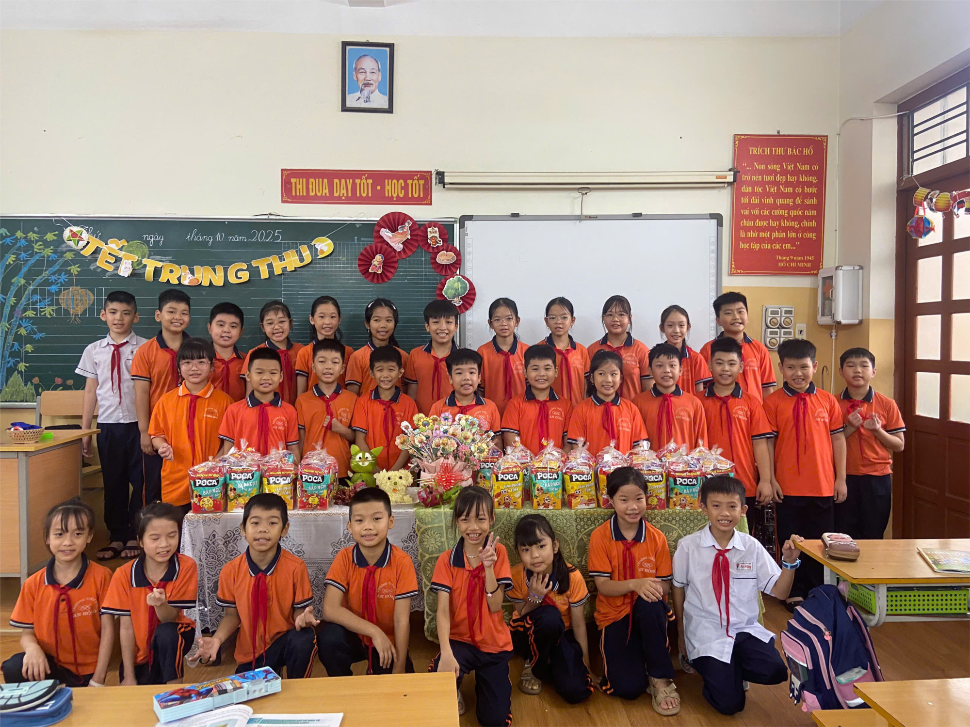 Ngay từ sáng sớm, lớp học đã được trang trí rực rỡ với đèn ông sao, lồng đèn giấy, bóng bay và những mâm cỗ đầy sắc màu. Các bạn nhỏ ai nấy đều háo hức, khuôn mặt rạng rỡ chờ đón chương trình “Vui Tết Trung thu” do cô giáo chủ nhiệm và Ban phụ huynh tổ chức.