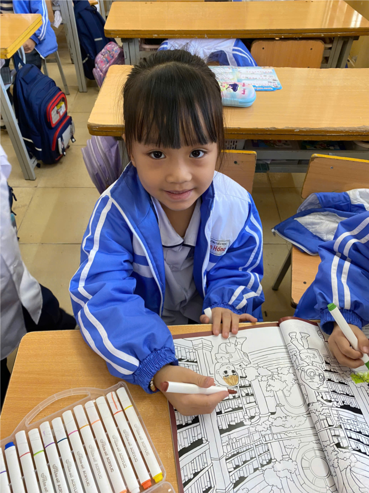 Không chỉ học tốt, Quỳnh Anh còn rất sáng tạo, đặc biệt trong các hoạt động mỹ thuật. Em luôn say mê tô màu, vẽ tranh và có khả năng quan sát, phối hợp màu sắc hài hòa. Trong những giờ học, hình ảnh em chăm chú hoàn thành sản phẩm của mình đã trở thành nguồn cảm hứng cho nhiều bạn trong lớp.