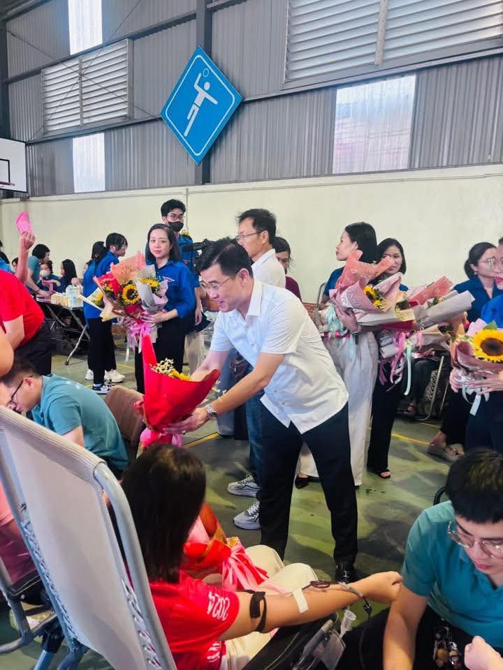 Đ/c Nguyễn Hữu Thanh - Phó Bí thư Đảng uỷ, Chủ tịch UBND phường tặng hoa tình nguyện viênHiến máu tình nguyện là hoạt động có ý nghĩa nhân văn sâu sắc, là nghĩa cử cao đẹp, thể hiện tinh thần “tương thân, tương ái”, “mỗi giọt máu cho đi – một cuộc đời ở lại”. Những giọt máu trao đi sẽ góp phần chung tay cùng ngành Y tế cứu sống người bệnh, mang lại niềm vui, hạnh phúc cho nhiều gia đình và lan tỏa mạnh mẽ truyền thống nhân ái, sẻ chia của dân tộc ta.